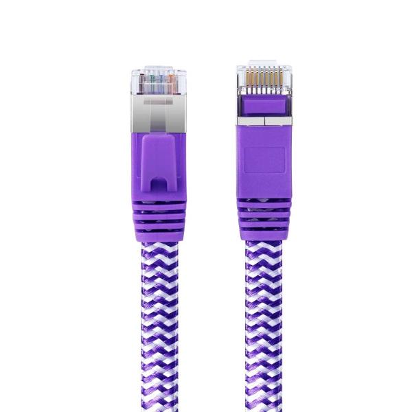 EJE Brand Flat CAT.6A FTP Blue White Stripe Patch Cable Special Design for 10 Gigabit Network Images |